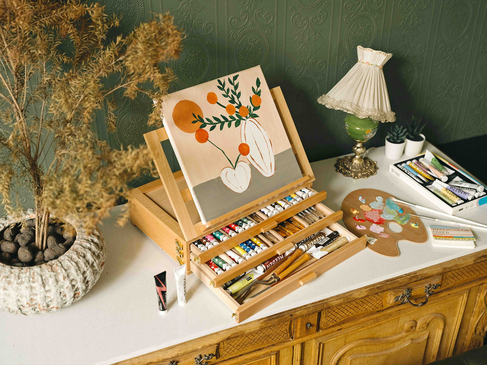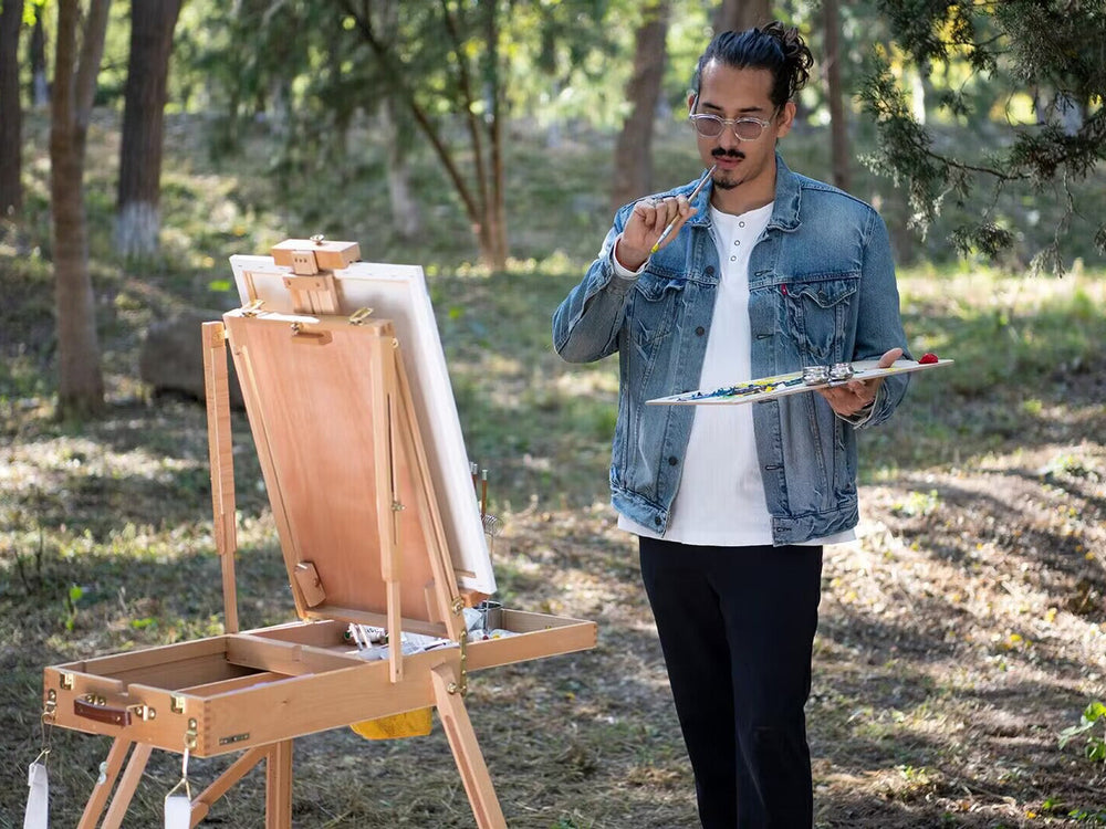 MEEDEN Solid Beech Wood Plein Air French Easel, Foldable & Spacious -HX-3 MEEDEN Foldable French Style Large Sketchbox Art Easel-HX-3 - MEEDEN ARTEasel