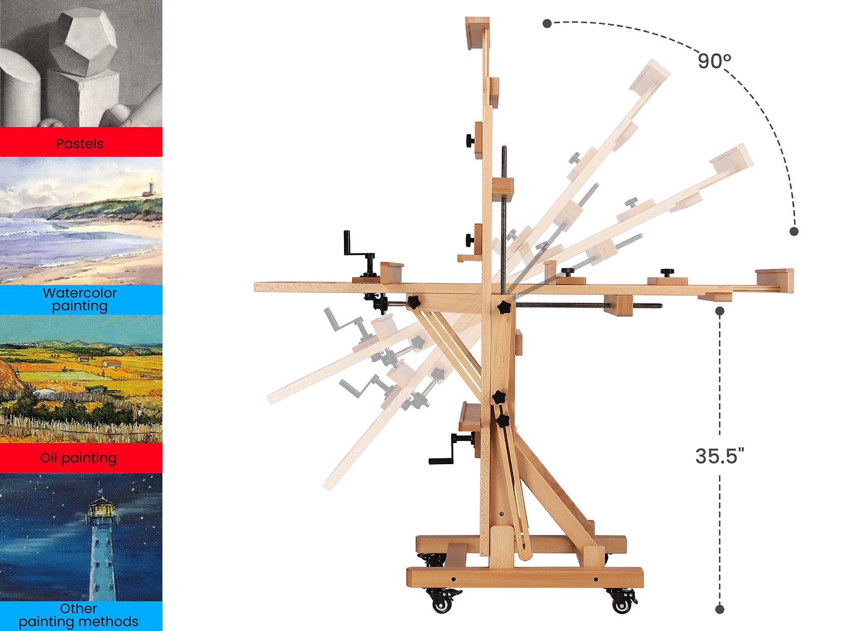 MEEDEN Deluxe Studio Rocker Crank Easel - Where Heritage Craftsmanship Meets Modern Artistry