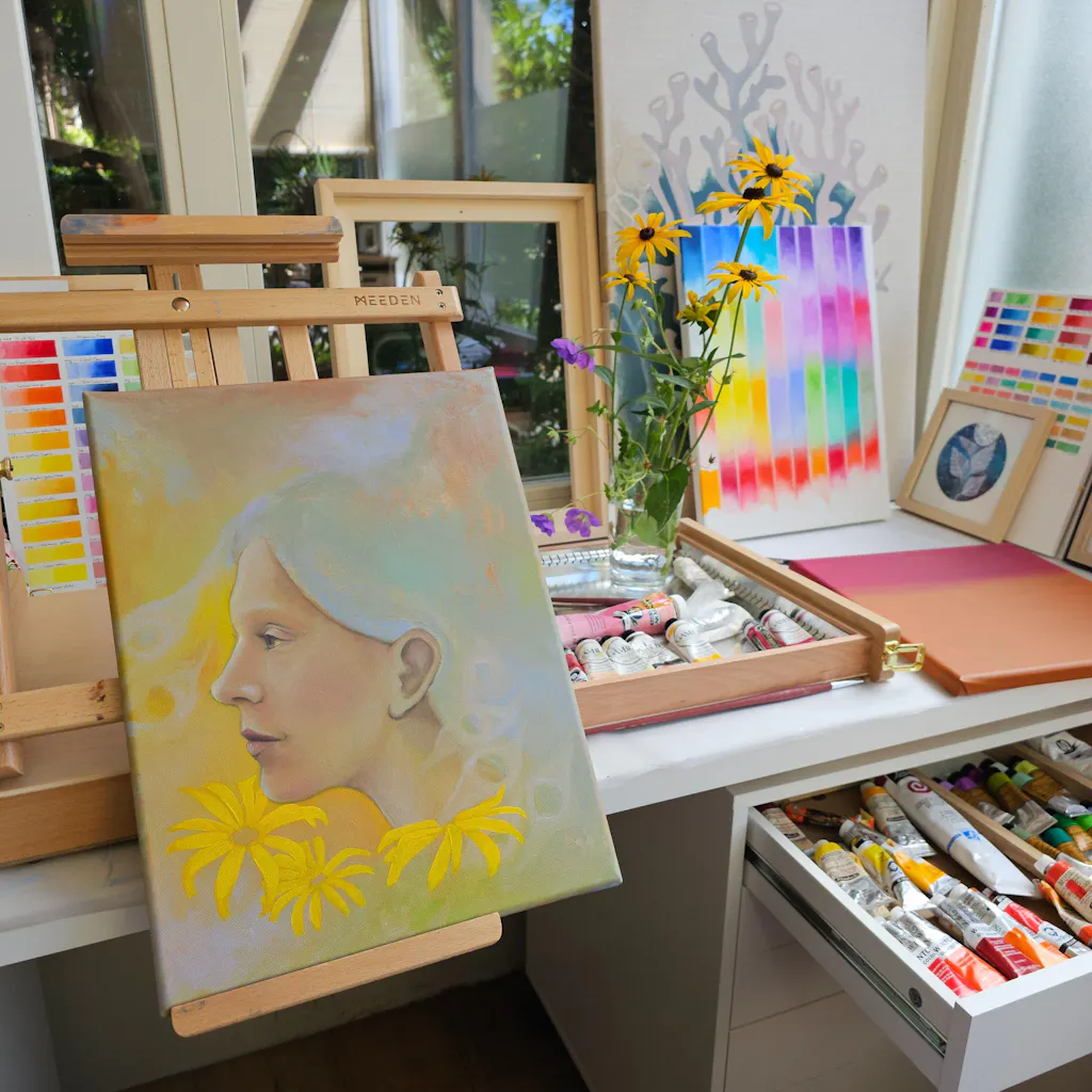 - Table Easel with 2 Trays: Features Two Thickened Sliders with Slots to Stabilize Canvases Better and Accommodate Both Thin and Thicker Stretched Canvases. The Versatile Studio Sketchbox Tabletop Easel by MEEDEN Holds All Your On-the-Go Painting and Drawing Supplies, Perfect for Studio or Plein Air Artists, Art Students, and Beginners.