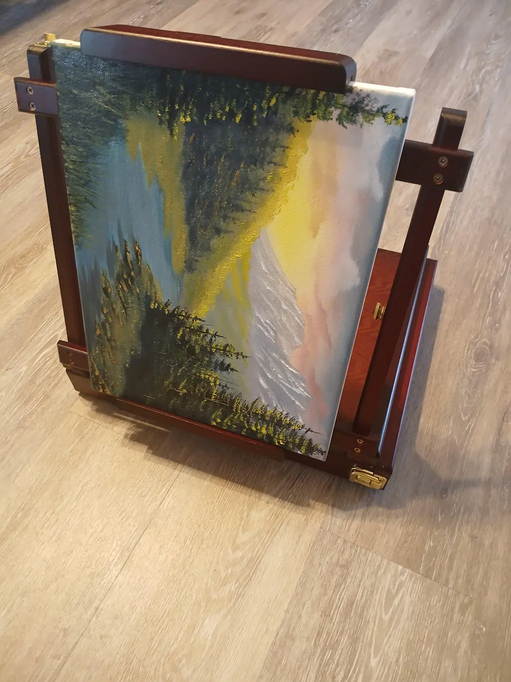 - Just Right Size for Travel: Fully Folded, the Easel Measures 16.5" W × 14.2" D × 4.75" H (Adjusts to 34" High) and Weighs 9 lbs. No Assembly Is Required. This Elegant Table Easel Converts into a Travel Case for Painting on the Go.