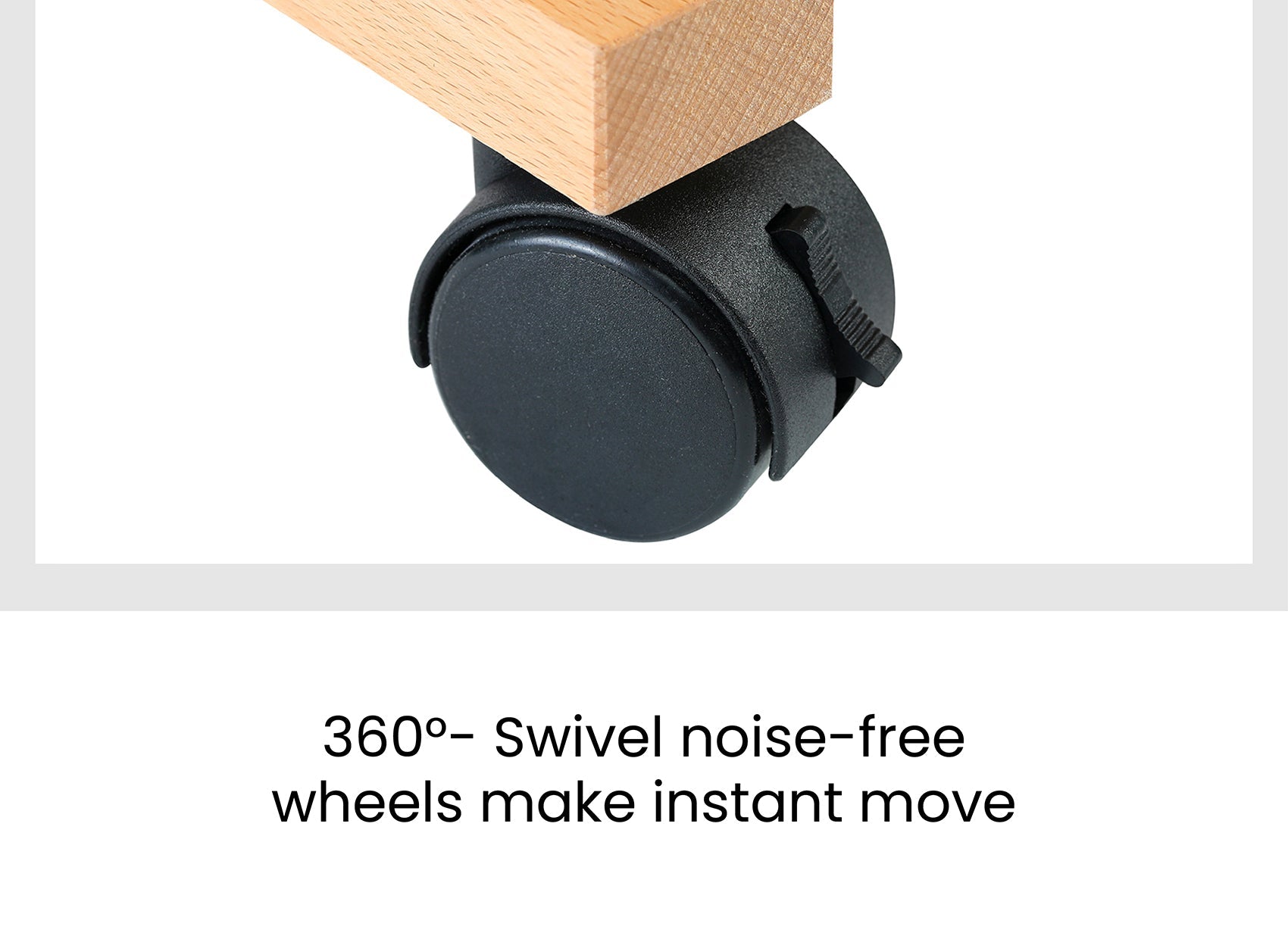 Convenient handle for easy grasp. 360°-Swivel noise-free wheels make instant move.