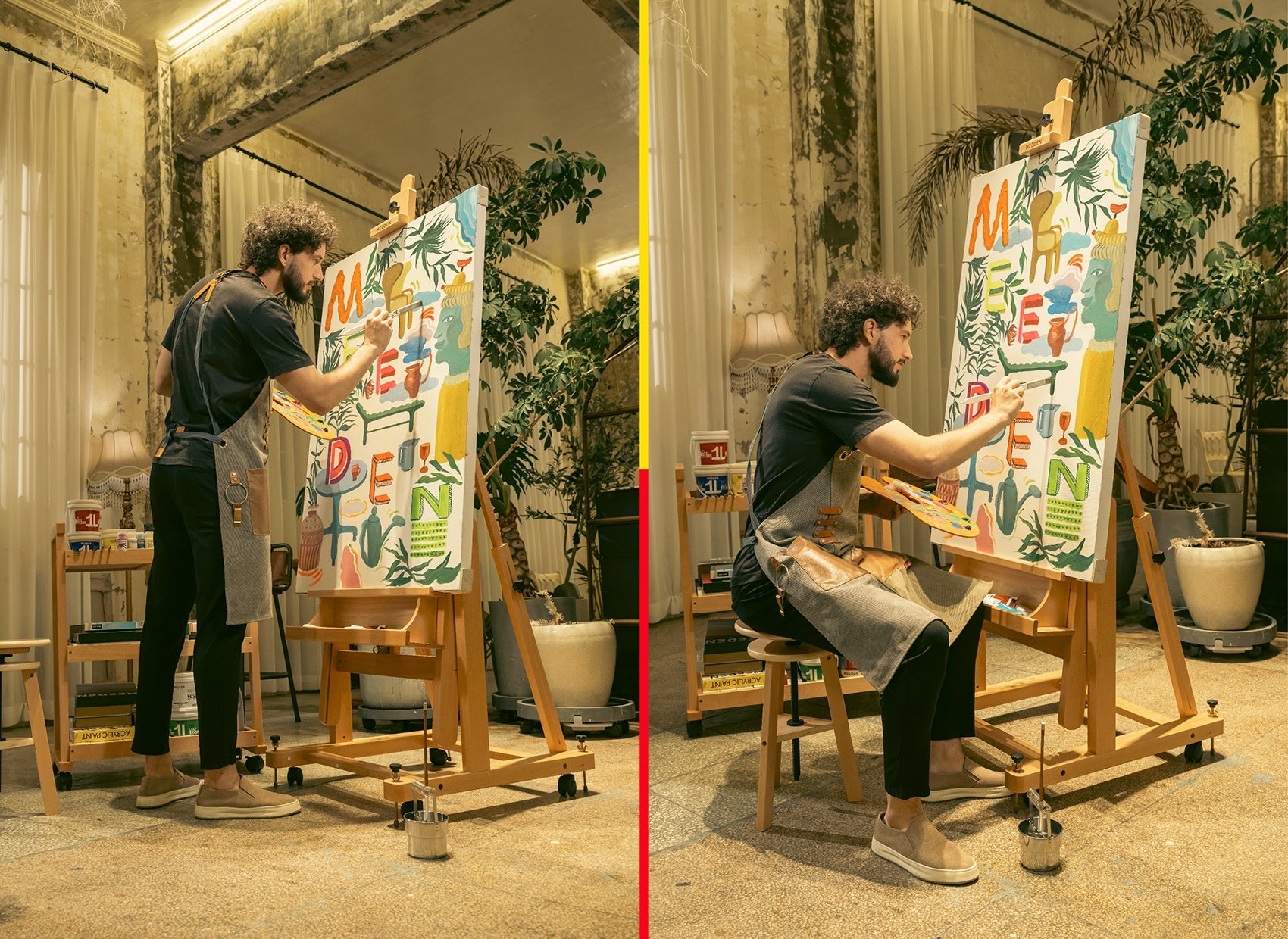 - EFFORTLESS MOBILITY - Mobility is a breeze with the painting easel, which boasts four 360° smooth-running, silent wheels, allowing artists to move their canvas without breaking their concentration. In addition, four leveling screws secure the easel and provide exceptional stability for larger canvases.