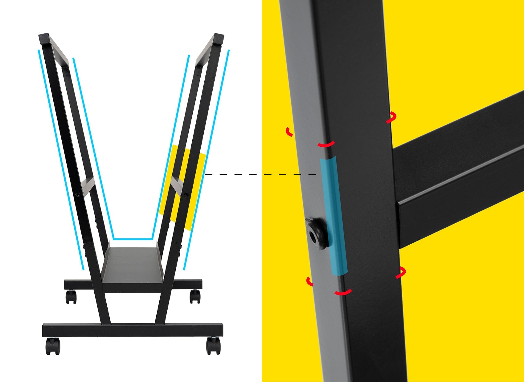 The metal frame with a stable structure prevents tipping over, ensuring safety. Exquisite metal craftsmanship brings a fine and smooth touch to every corner of the rack. Advanced technology handles every angle, delivering 100% safe and caring details. The detailed iron workmanship makes the rack rust-proof and durable, while smooth edges and corners further enhance safety.